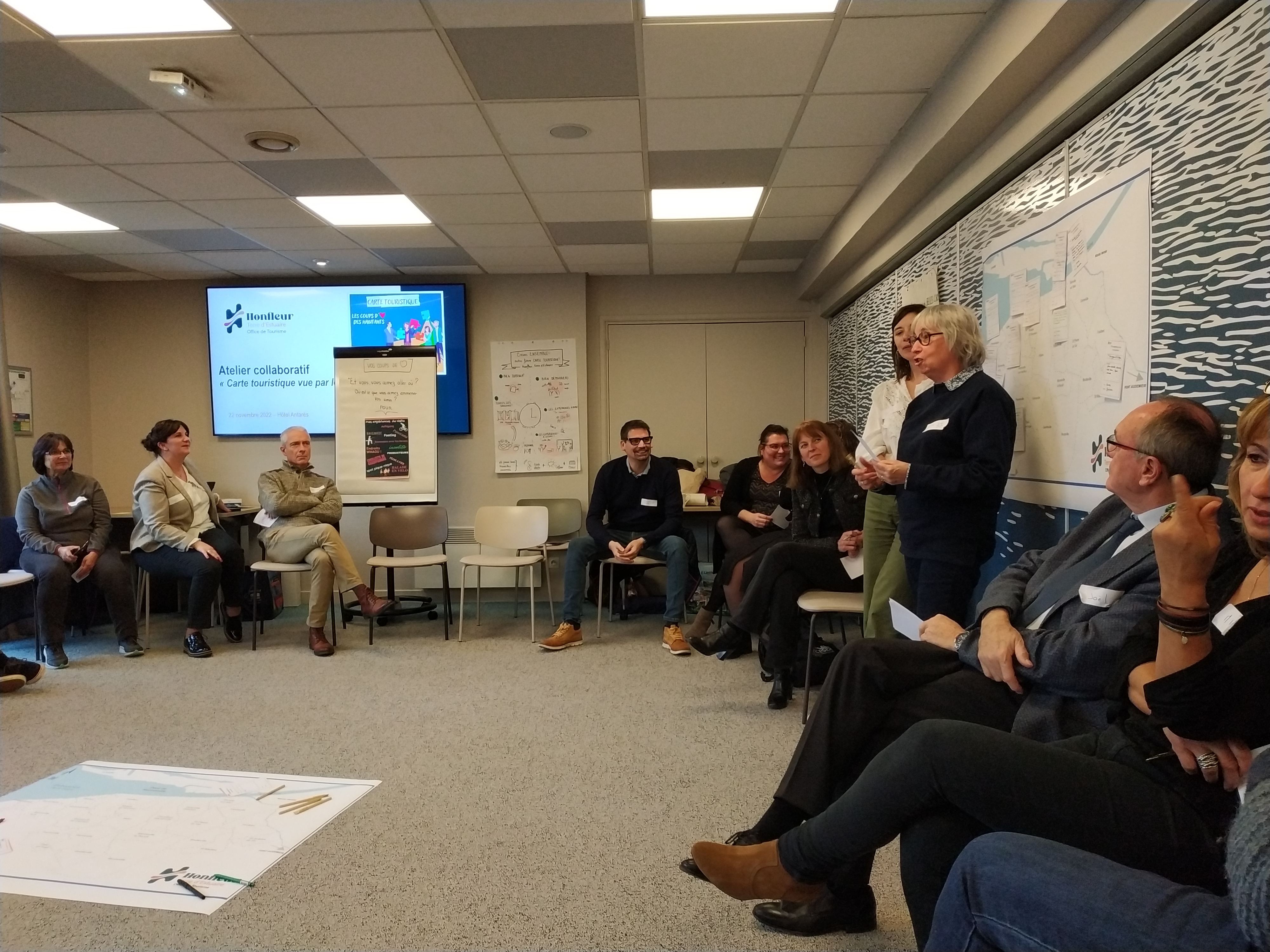 Dans le cadre de la création d’une carte touristique vue par les habitants de la CCPHB, l’Office du tourisme d’ Honfleur a organisé une journée de « co-construction ». Un moment de partage, de réflexion et de collage (:-) très sympathique à Honfleur.
