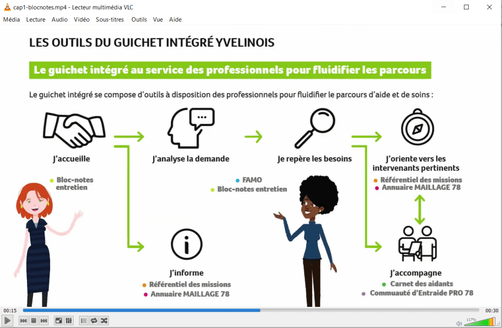 Pour le client Maillage 78 -portail départemental Santé et Autonomie pour les professionnels de la santé du médico-social et du social- réalisation d’une vidéo sur Powtoon pour montrer le parcours de soin d’une personne et l’articulation d’outils à disposition des différents acteurs.